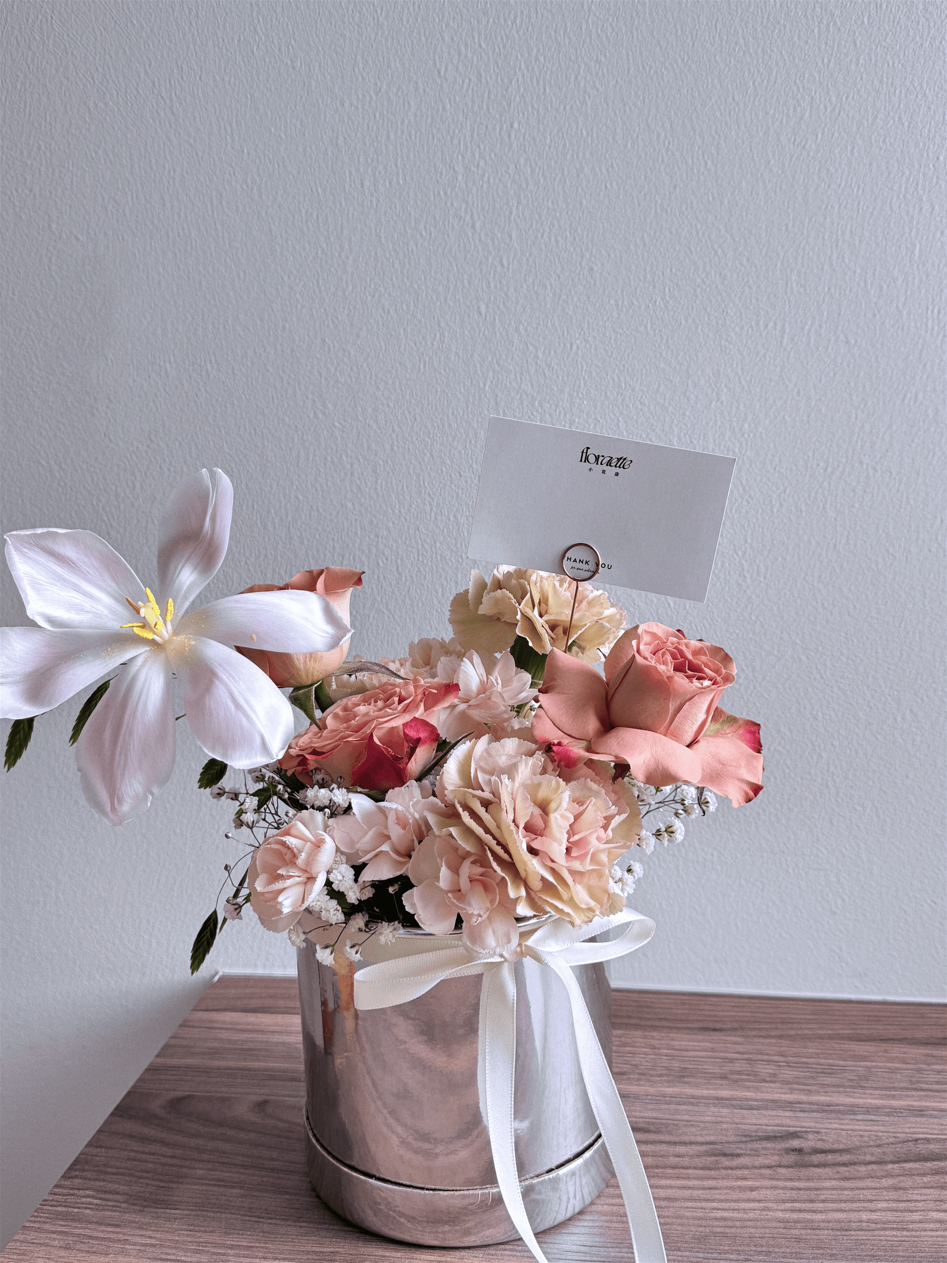 All florals and arrangements are personally handpick and handcraft , which may result in variations in dimensions, configuration, and colours compared to the pictured item. If a particular flower or filler is unavailable, we will substitute it with another of comparable value.