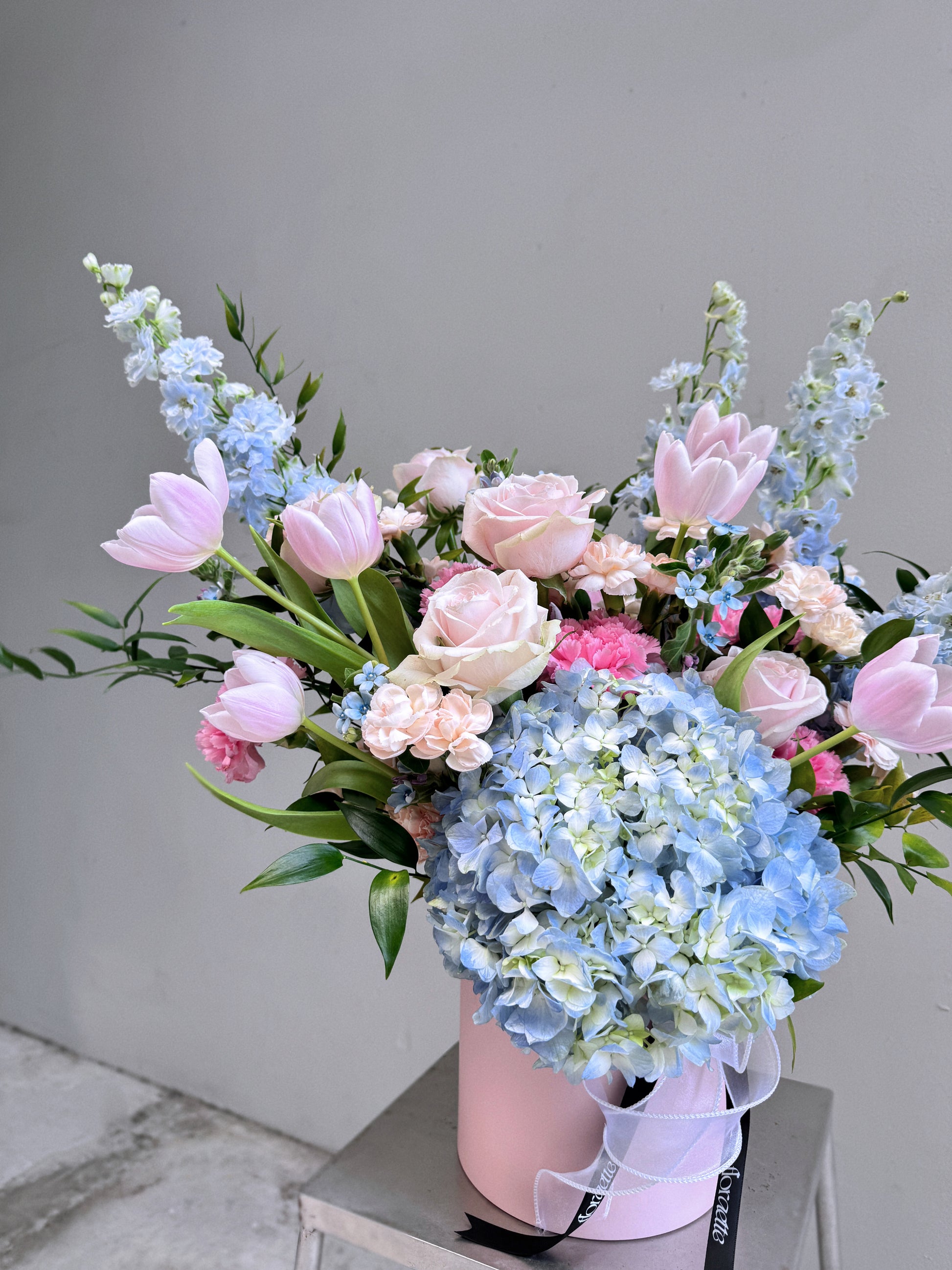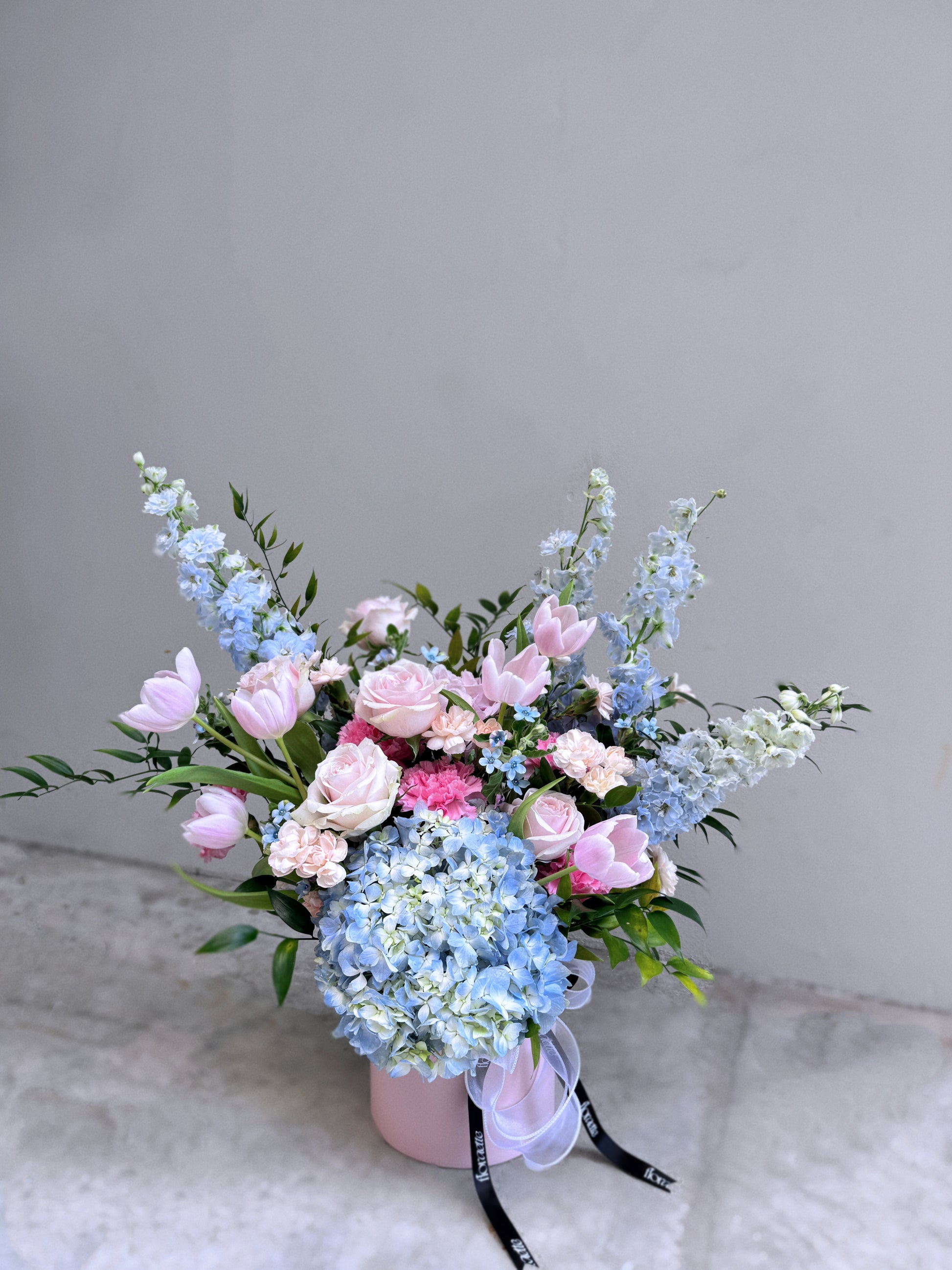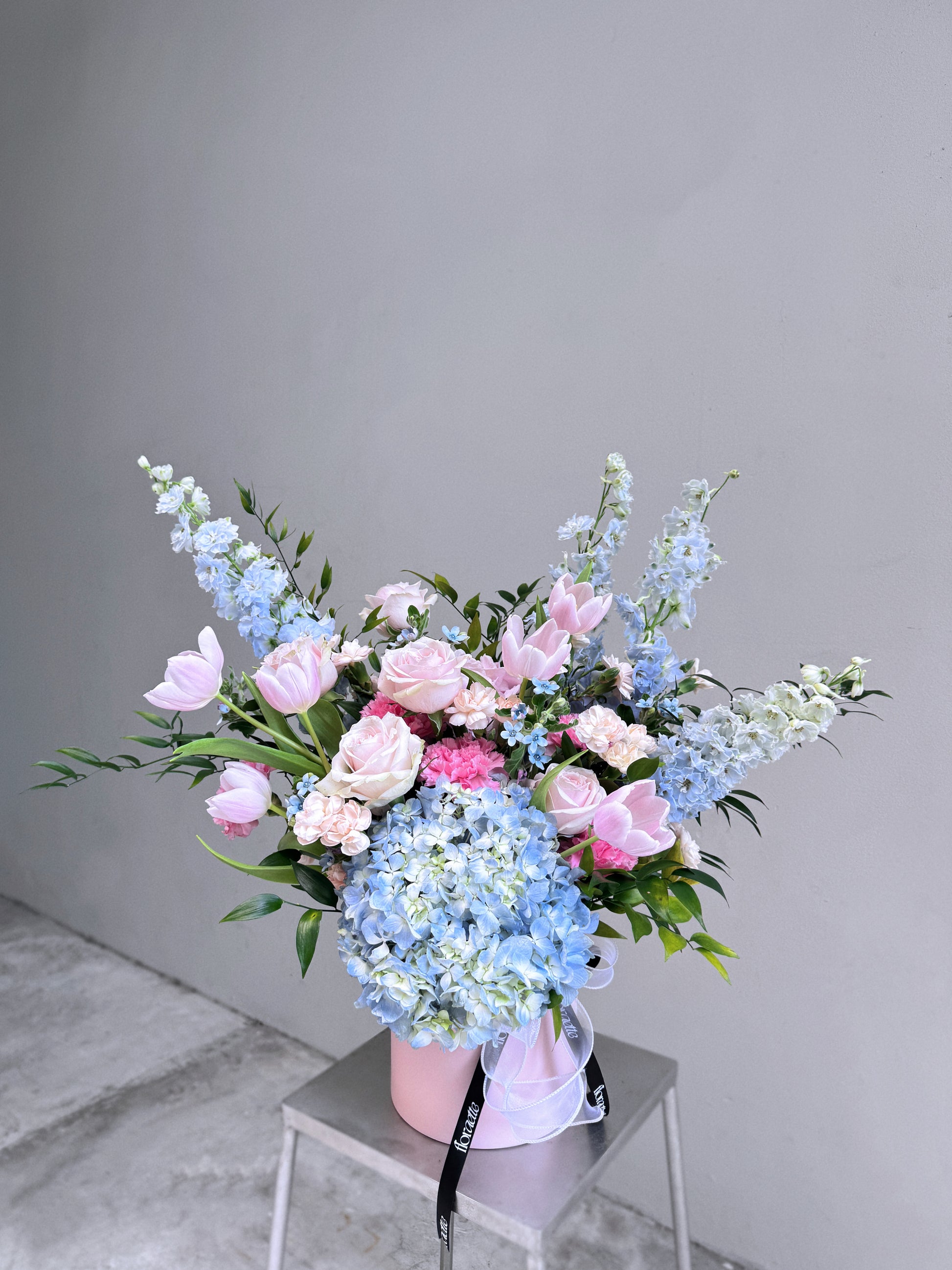 All florals and arrangements are personally handpick and handcraft , which may result in variations in dimensions, configuration, and colours compared to the pictured item. If a particular flower or filler is unavailable, we will substitute it with another of comparable value.