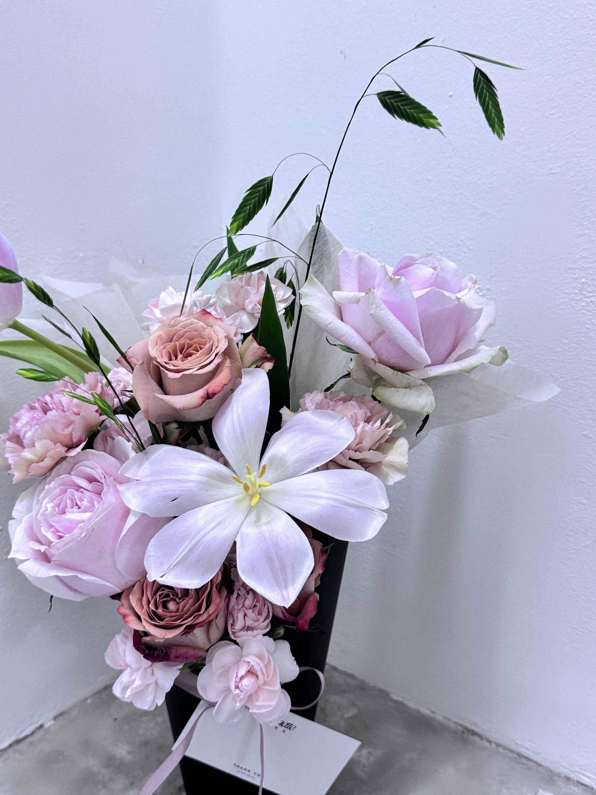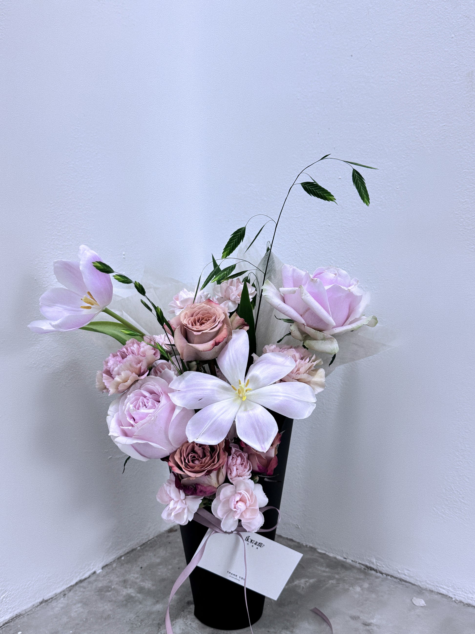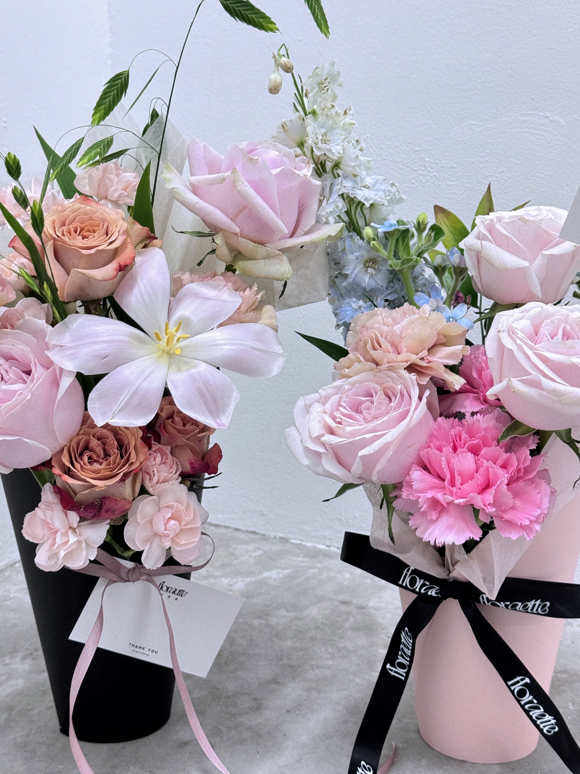 All florals and arrangements are personally handpick and handcraft , which may result in variations in dimensions, configuration, and colours compared to the pictured item. If a particular flower or filler is unavailable, we will substitute it with another of comparable value.