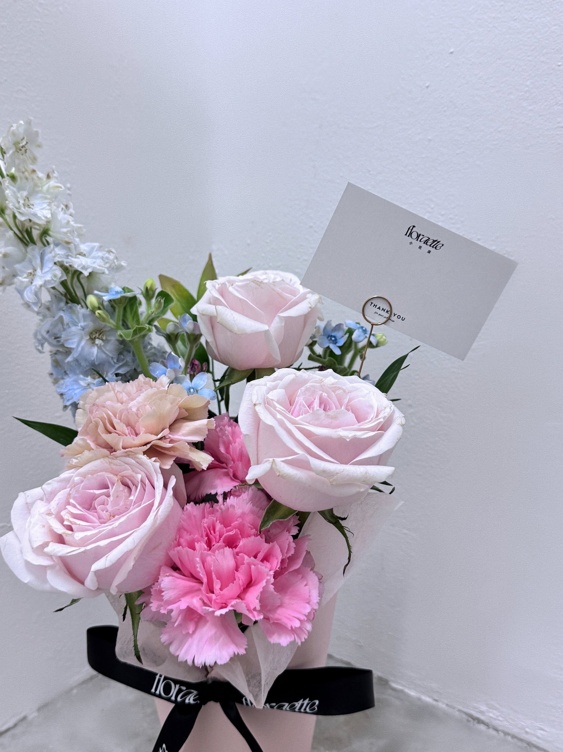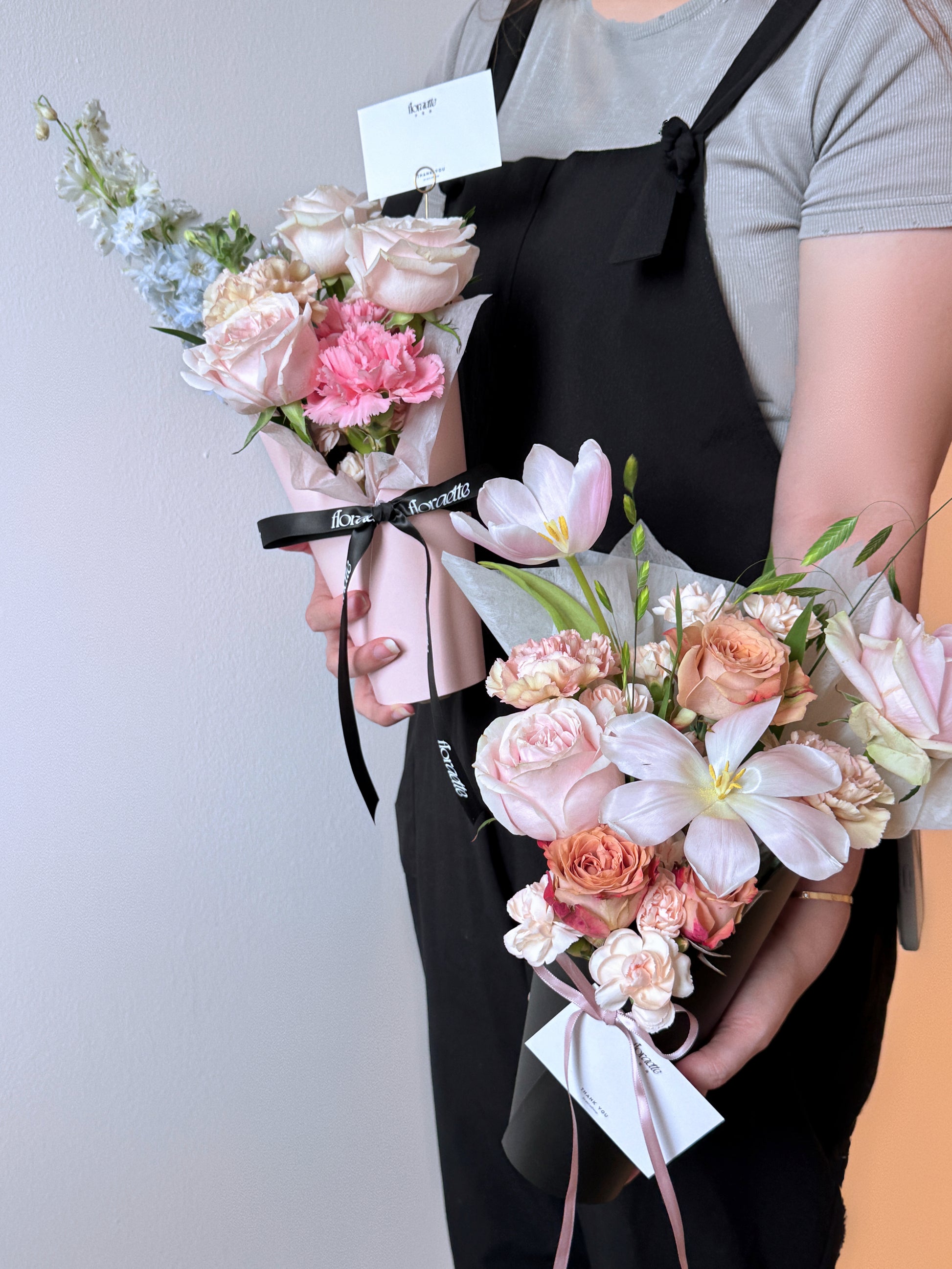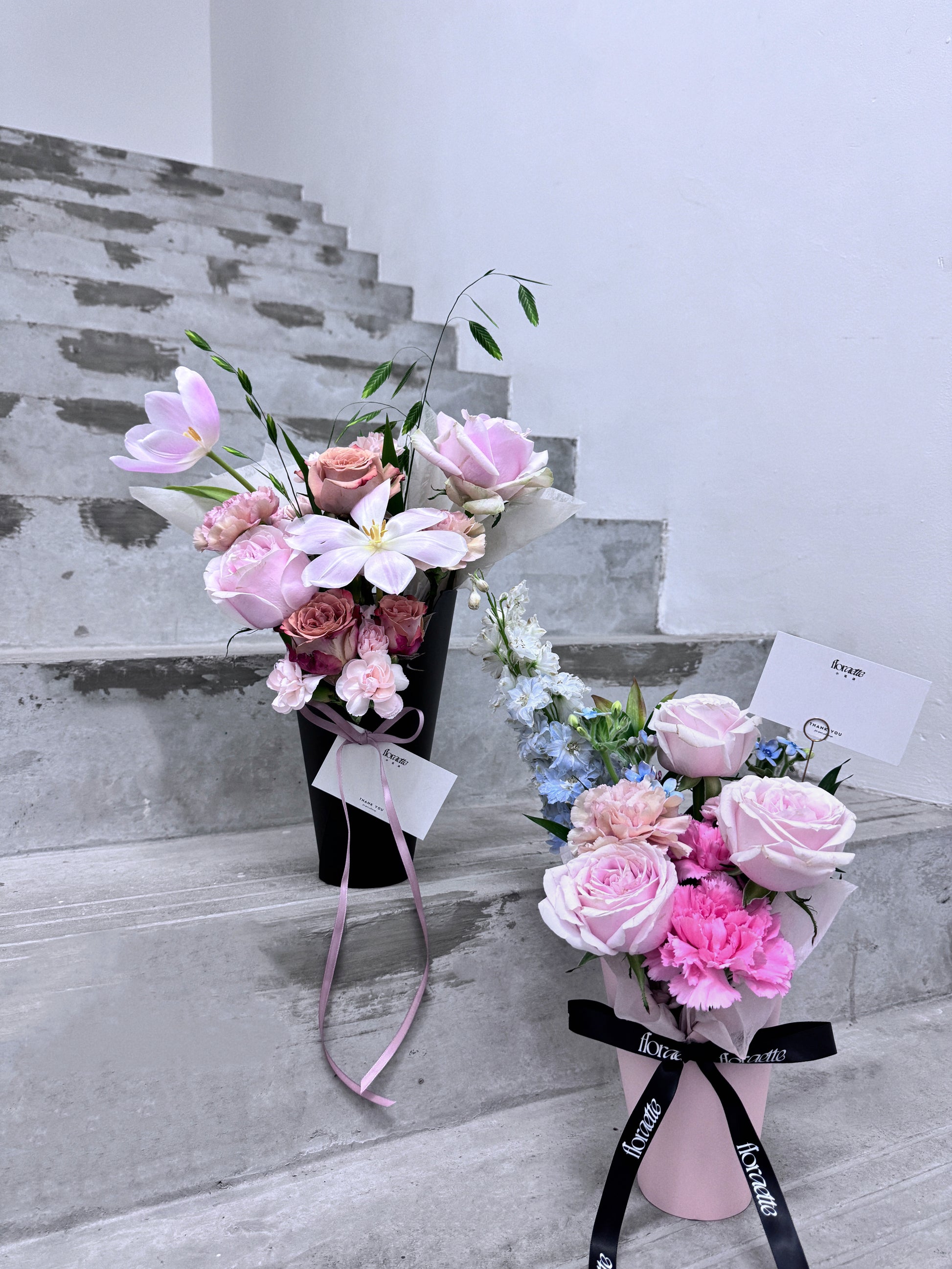 All florals and arrangements are personally handpick and handcraft , which may result in variations in dimensions, configuration, and colours compared to the pictured item. If a particular flower or filler is unavailable, we will substitute it with another of comparable value.