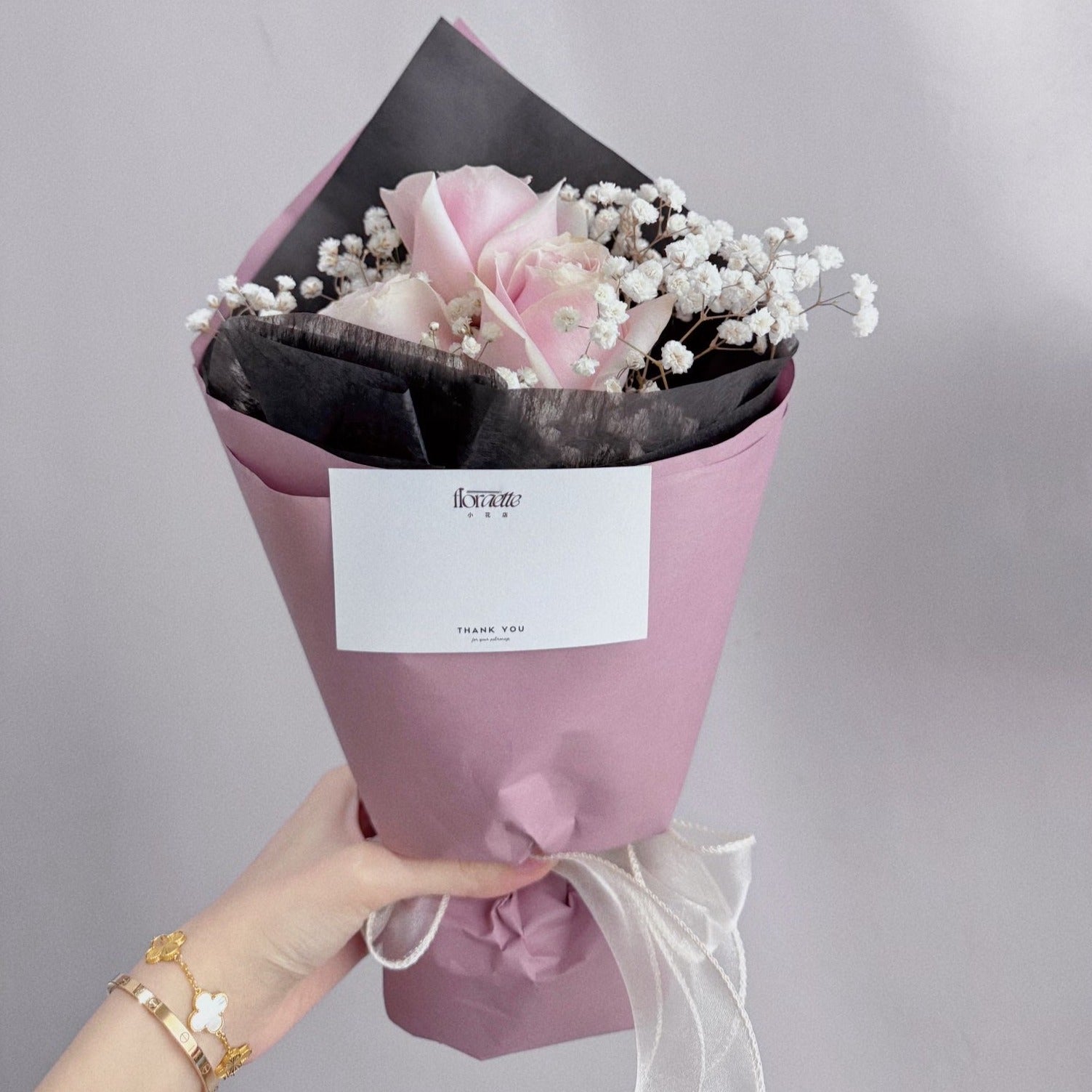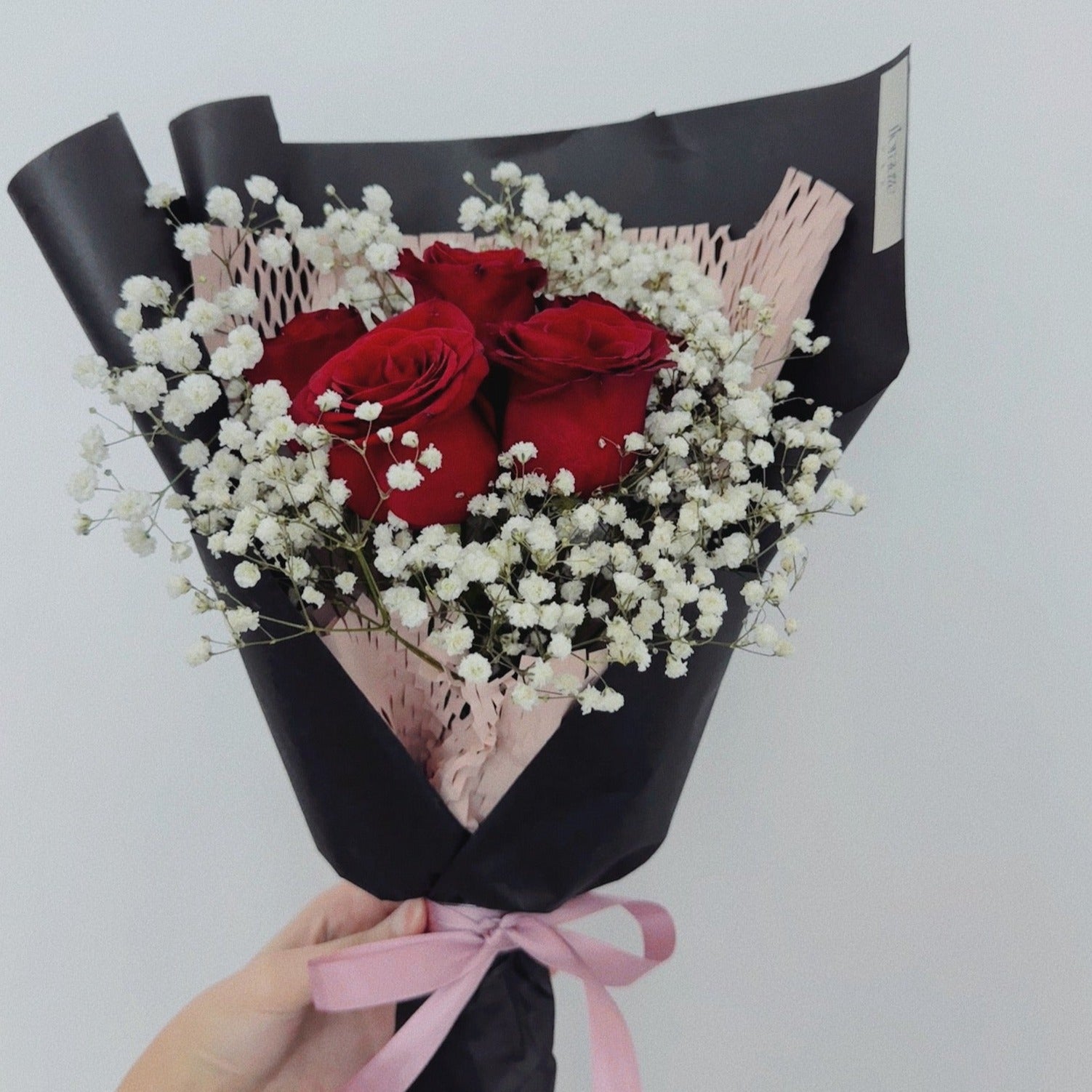 Experience the perfect bouquet for your Valentine's day with our Petite Rosé. Choose from 3, 5, 7, 9, or 12 stunning stalks of roses in 4 beautiful colours: Romantic Red, Blushy Pink, and Cappuccino. Make a lasting impression with this elegant arrangement.