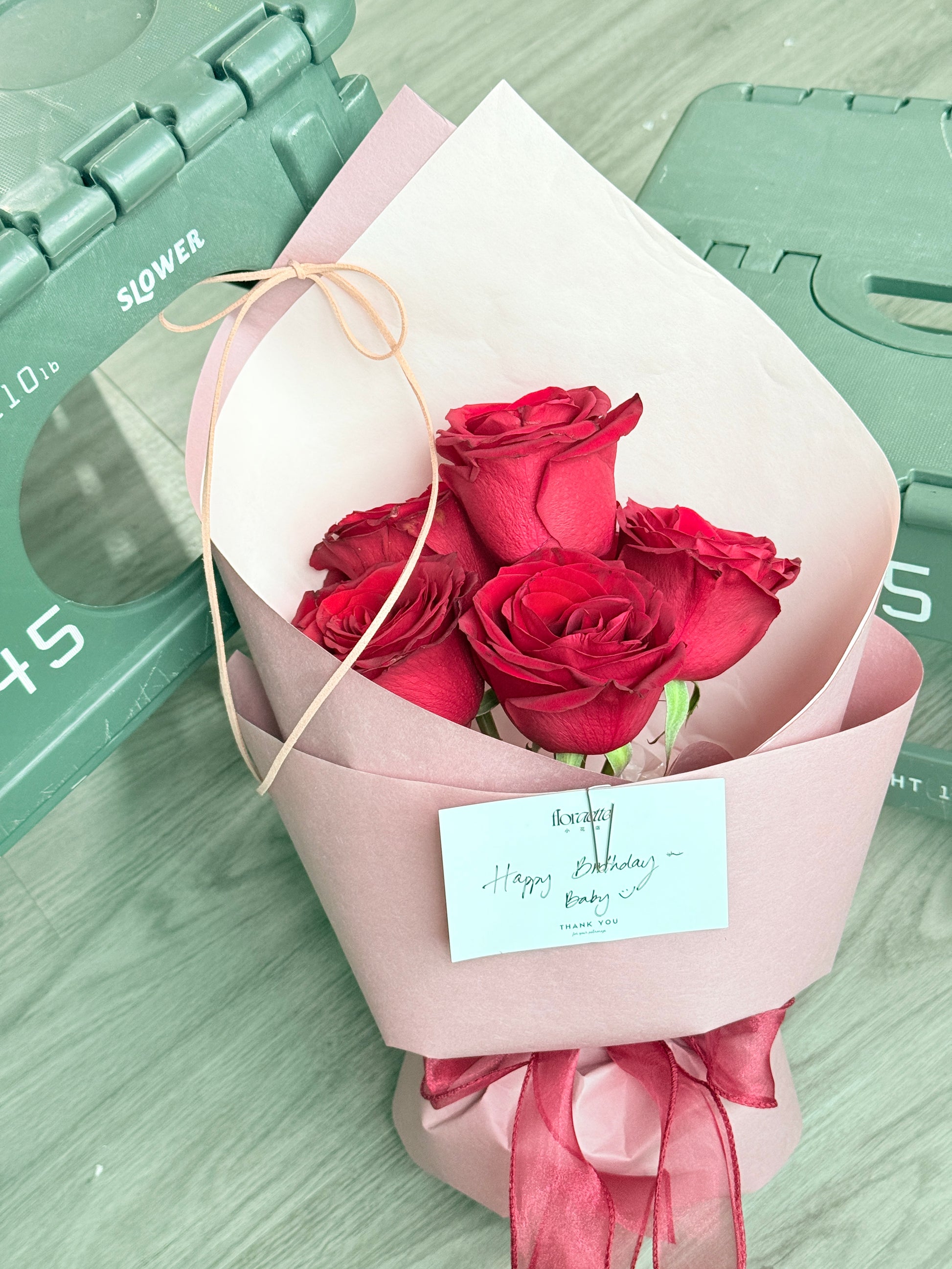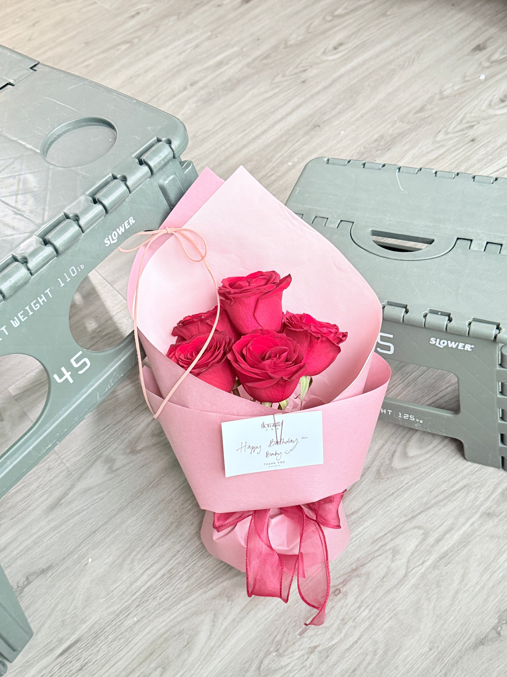 Experience the perfect bouquet for your Valentine's day with our Petite Rosé. Choose from 3, 5, 7, 9, or 12 stunning stalks of roses in 4 beautiful colours: Romantic Red, Blushy Pink, and Cappuccino. Make a lasting impression with this elegant arrangement.