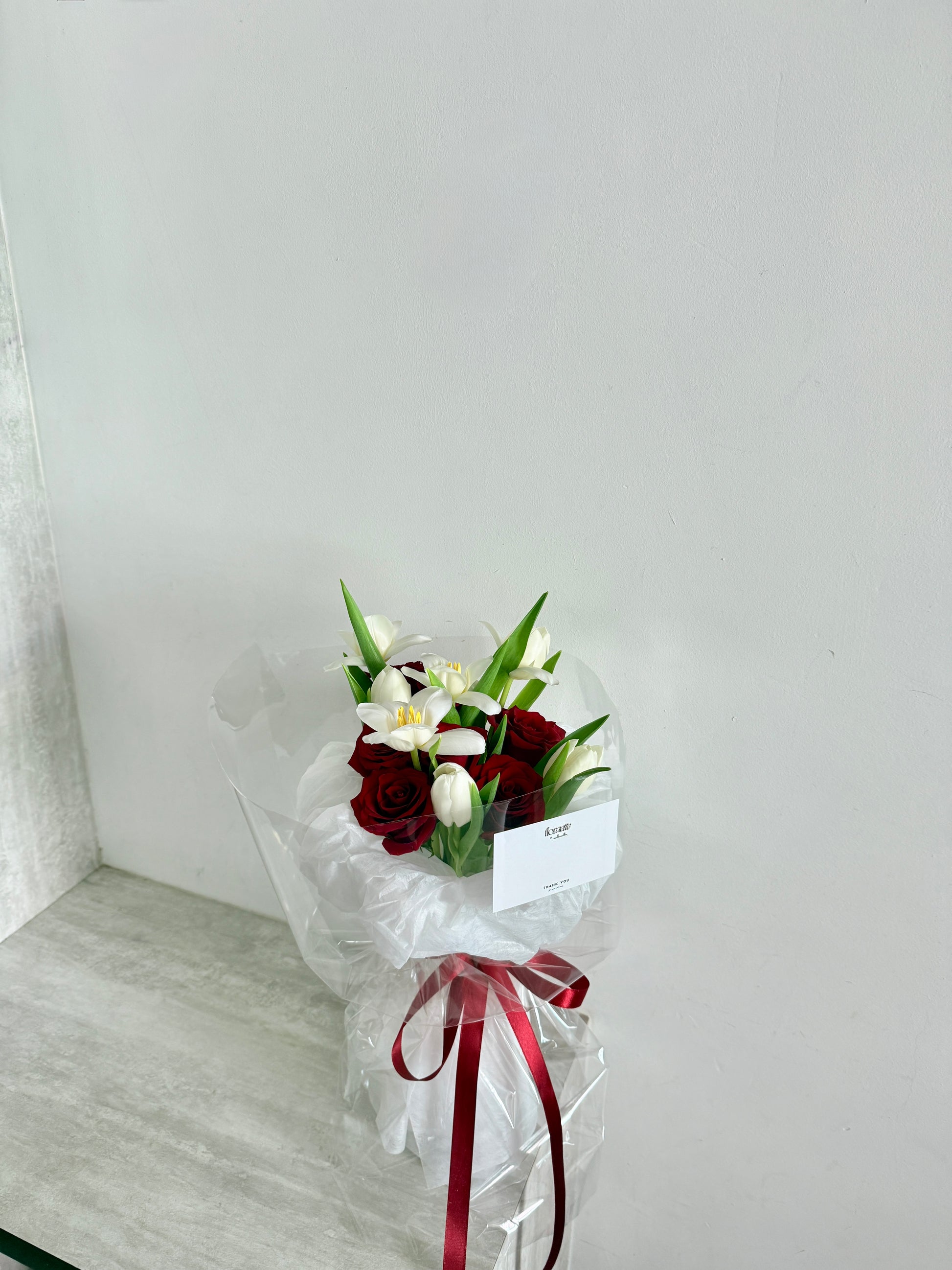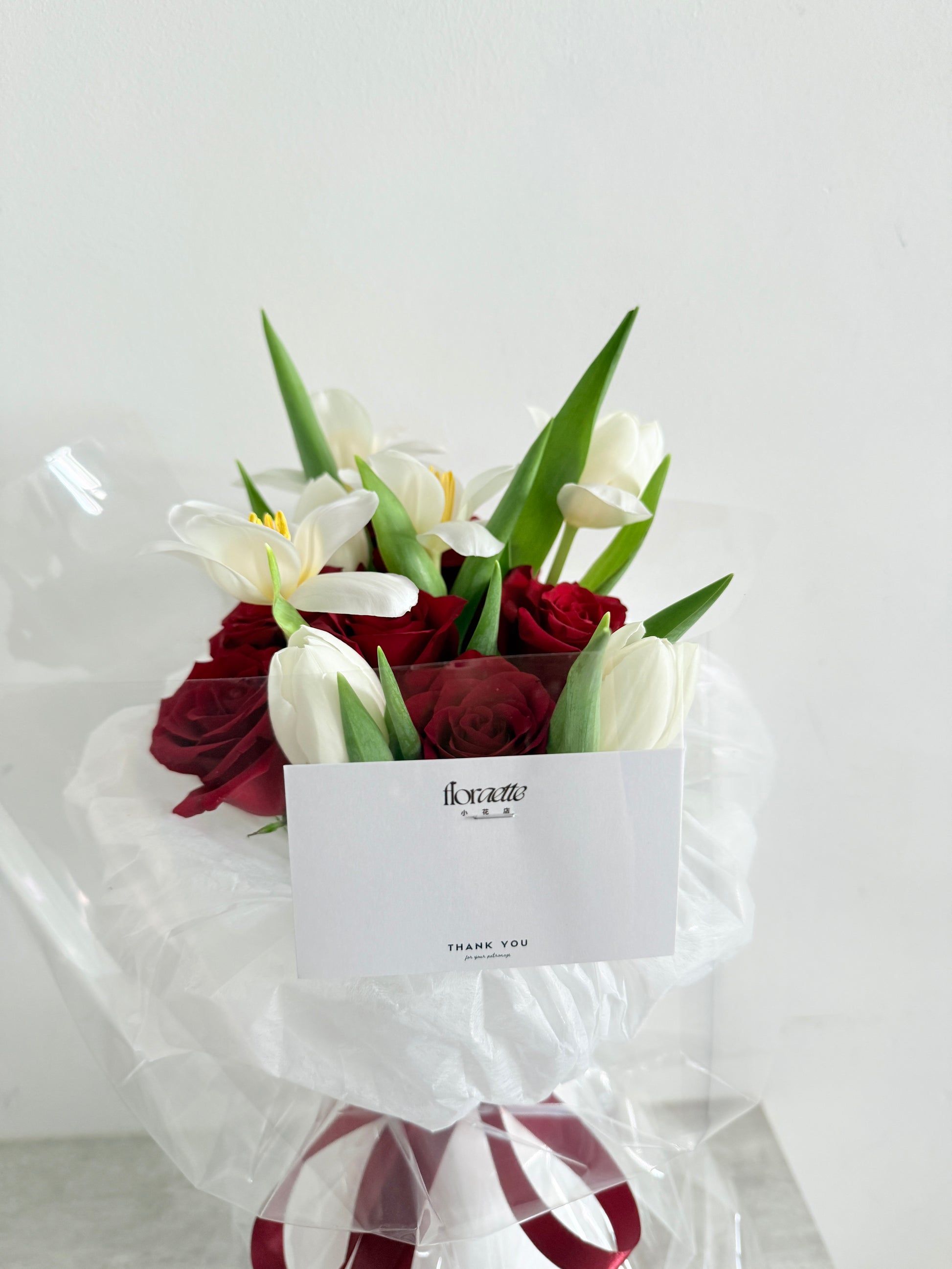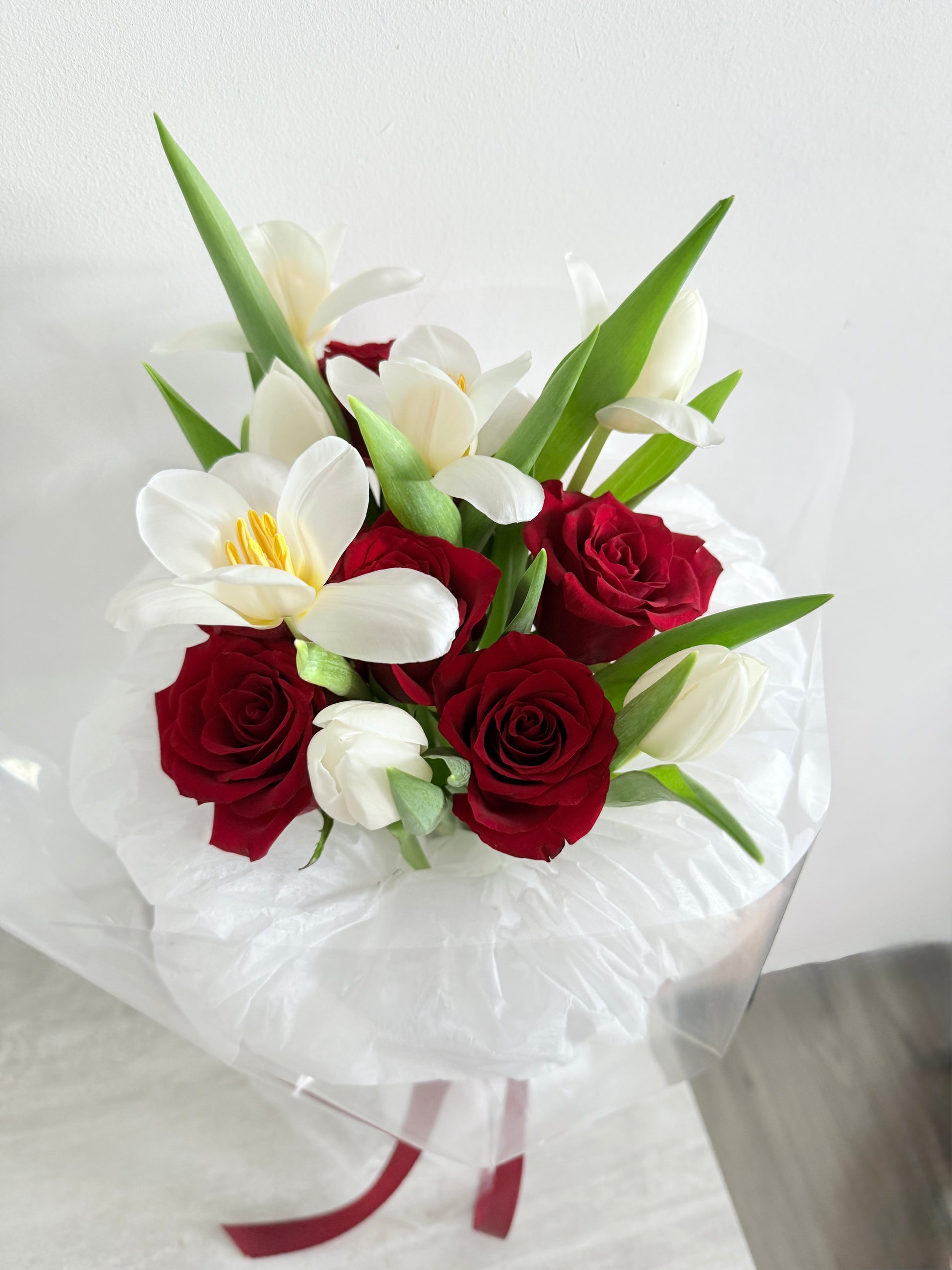 A timeless blend of soft, romantic tulips and classic, elegant roses, it is the perfect bouquet to express your deepest emotions. This delicate arrangement combines the gentle curves of tulips with the lush, velvety texture of roses, creating a harmonious balance of beauty and grace. Ideal for Valentine’s Day, anniversaries, or just because, this bouquet whispers love, admiration, and thoughtfulness.