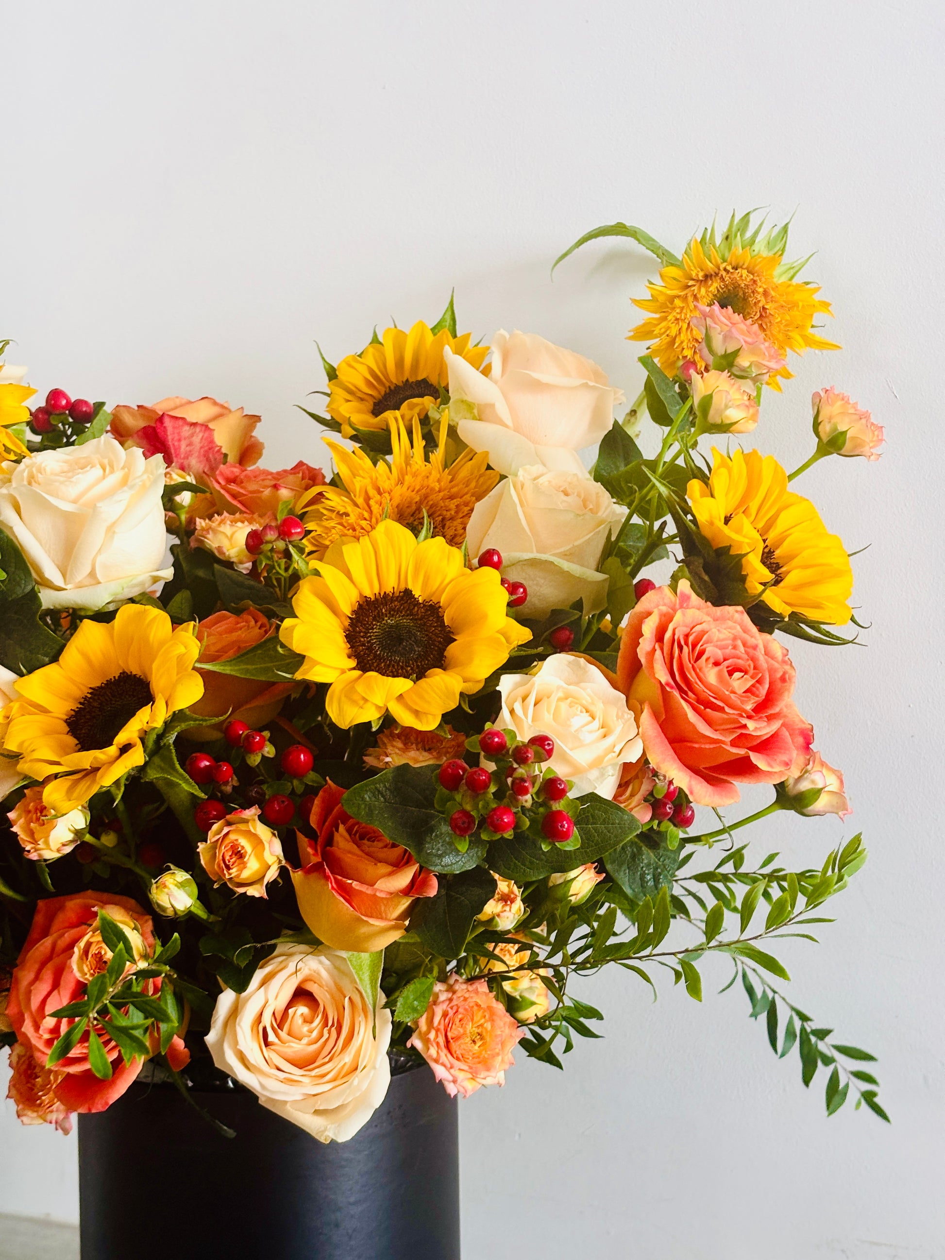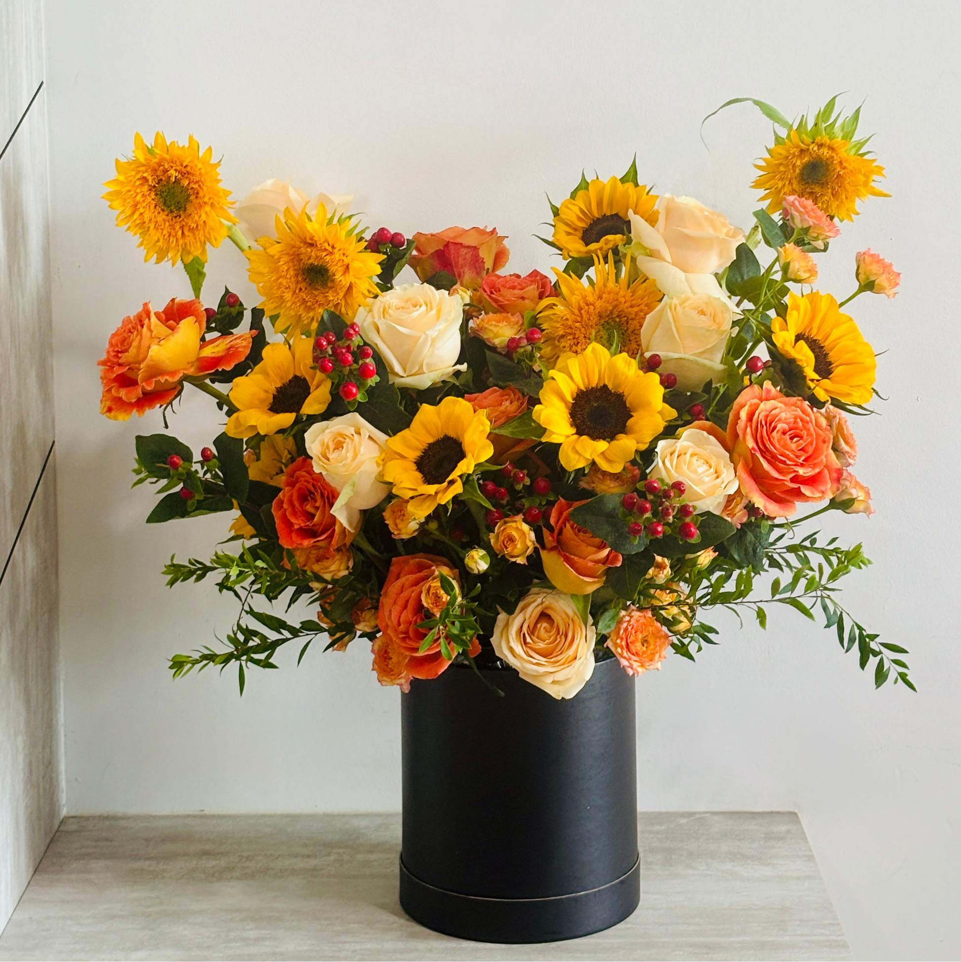 Elevate your space with the unparalleled luxury and elegance of the Bloom Box. Designed to impress, this stunning arrangement features radiant sunflower blooms as the centerpiece, surrounded by meticulously chosen accents that create a breathtaking focal point. Tropical flowers and lush foliage add depth and opulence, while rich red and vibrant orange tones, paired with shimmering embellishments or sleek containers, infuse warmth and energy into the design. Whether you’re hosting a lavish event or seeking to transform your everyday décor, the Bloom Box offers timeless sophistication and a refined touch of luxury that will captivate and inspire.
