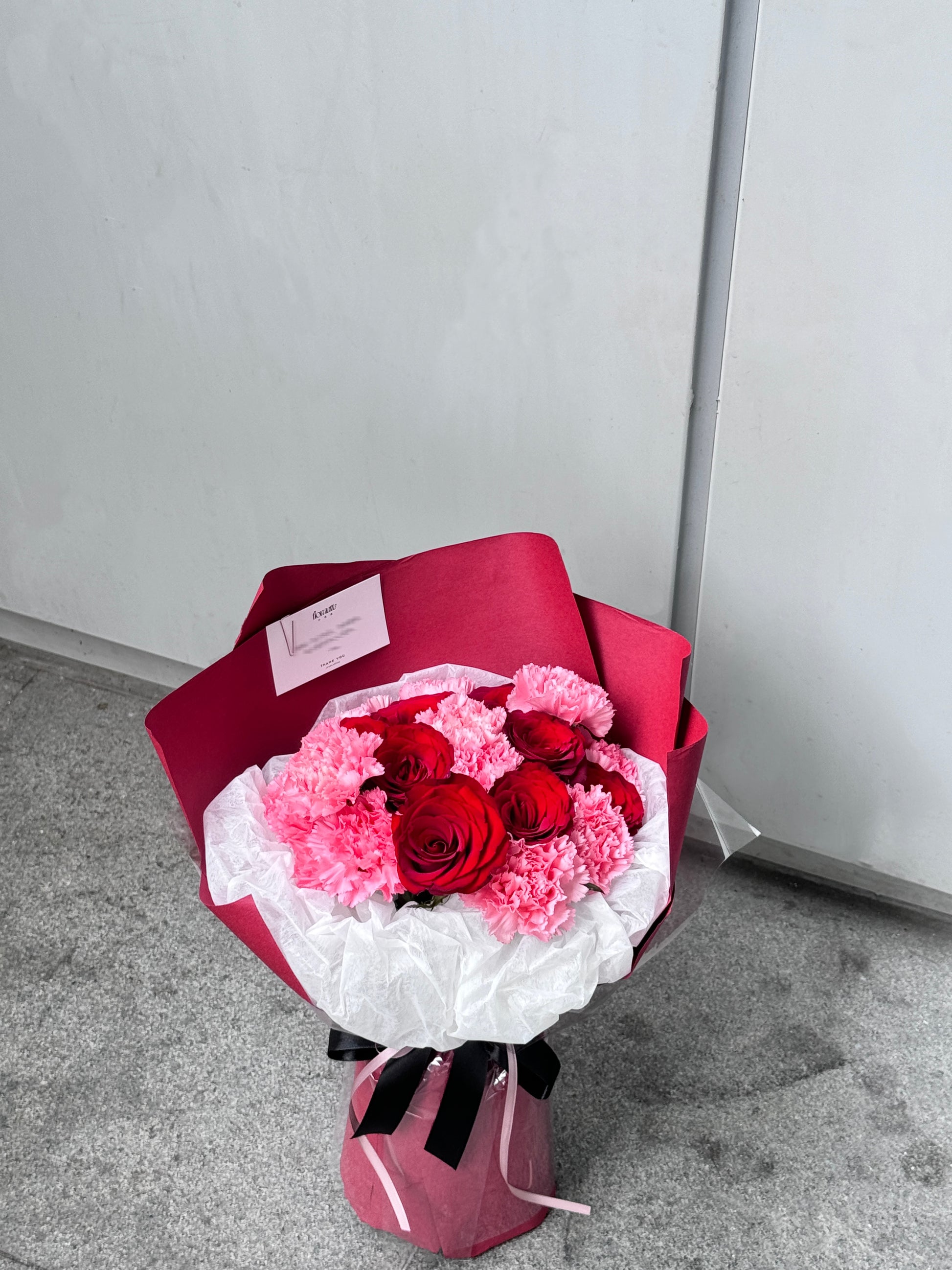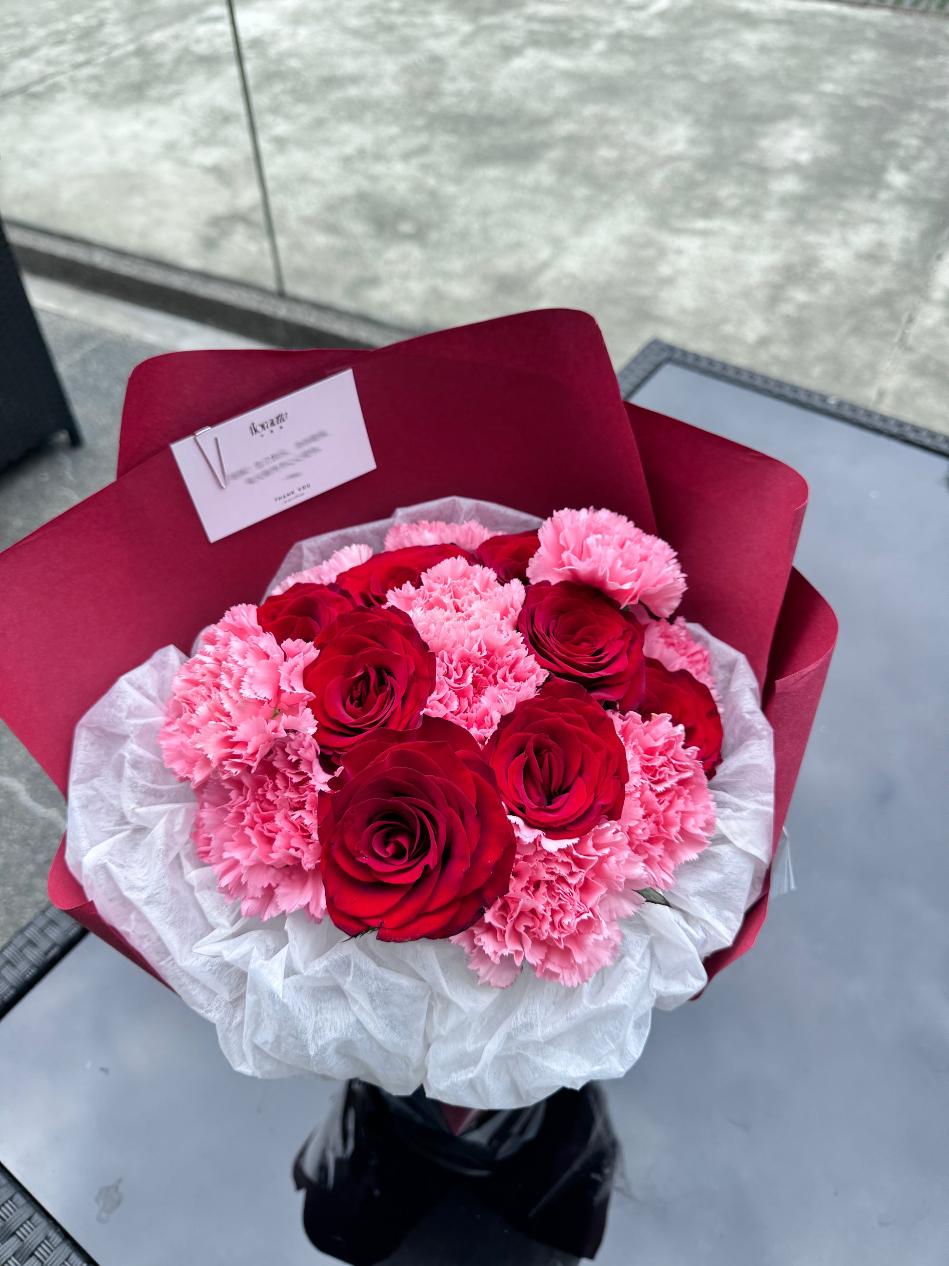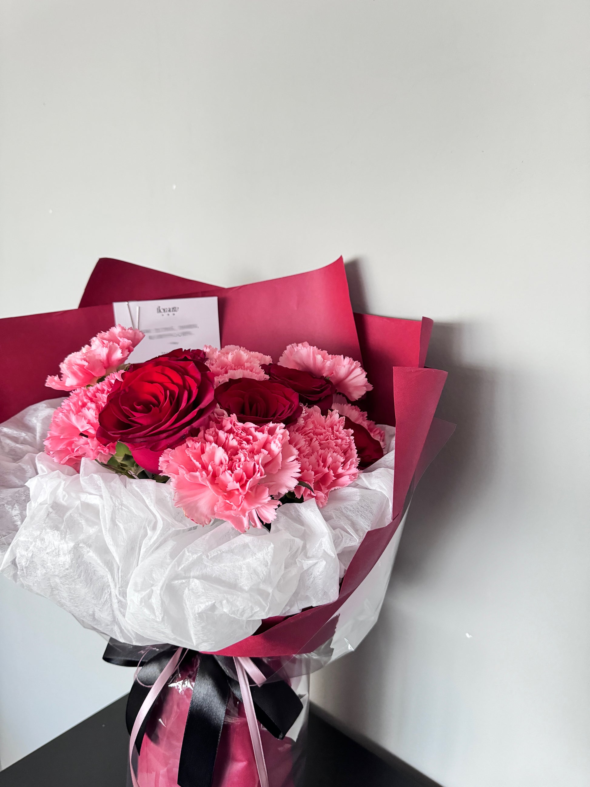 "Introducing our 'Timeless Bouquet'—a timeless blend of red roses and pink carnations, perfect for mums or beloved elders. With classic beauty and heartfelt sentiment, it's the ideal gift to convey lasting love and appreciation on any occasion."
